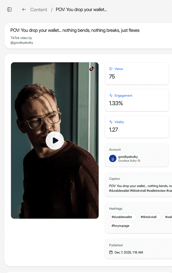 Automatically flags viral moments so your team can react instantly and scale winning content faster.